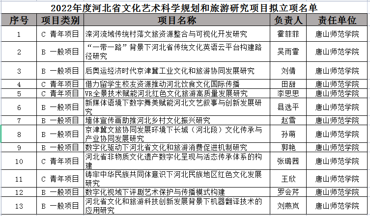 2022年度河北省文化艺术科学规划和旅游研究项目拟立项名单予以公示