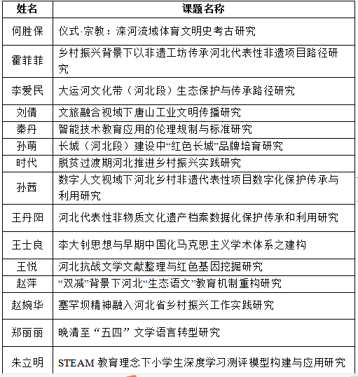 2022年度河北省社科基金项目校内评审推荐工作已经结束,现将推荐结果公示如下(按申报人姓名的首字母排序),2022年5月12日至2022年5月18日。在公示期内,任何单位或个人如有异议,请以书面形式提出异议,将理由和事实依据等连同相关佐证材料报送(寄送)到科研处。以单位名义提出异议的,应当加盖本单位公章,个人提出异议的,应当签署真实姓名及联系方式。