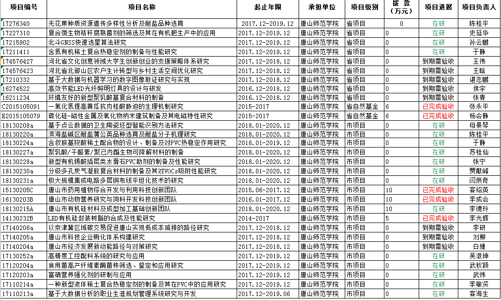 以上四类项目均需填报《唐山市科技计划项目执行情况调查表》和《唐山市科技计划项目科研成果获得情况统计表》(见附件)。